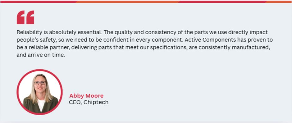 At Active Components, we’re proud to support forward-thinking manufacturers like Chiptech, helping transform challenges into opportunities and ideas into dependable solutions that make a difference every day.