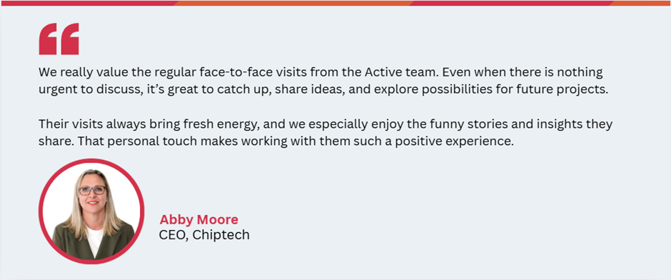 The collaboration between Active Components and Chiptech stands as a model of how long-term partnerships can drive lasting value. What began with Active simply supplying components has evolved into a strong collaborative partnership grounded in trust, responsiveness, and continuous improvement.